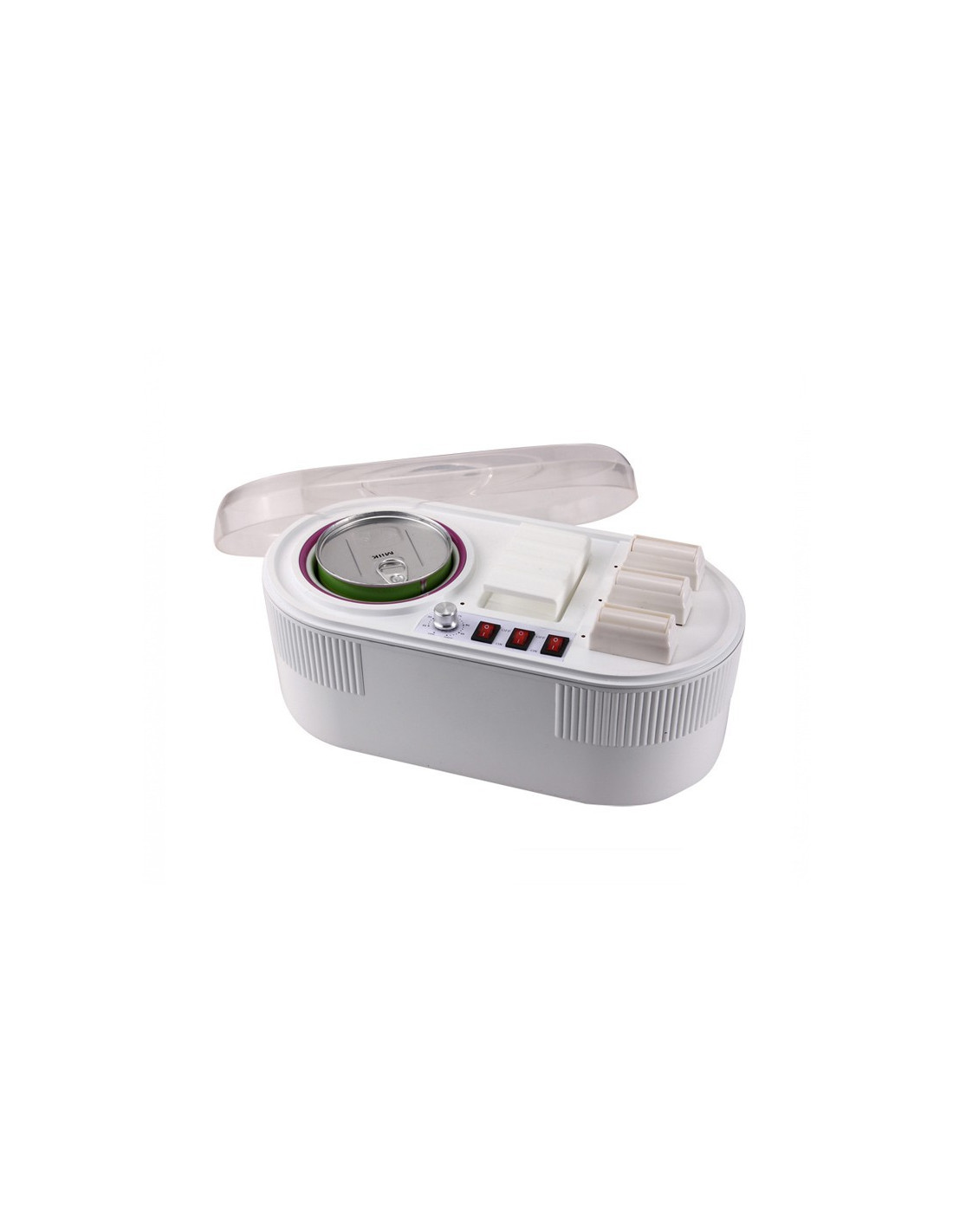 Equipo que combina un fundidor para cera en lata de 800 g. y tres alojamientos para cartuchos de cera estándares.