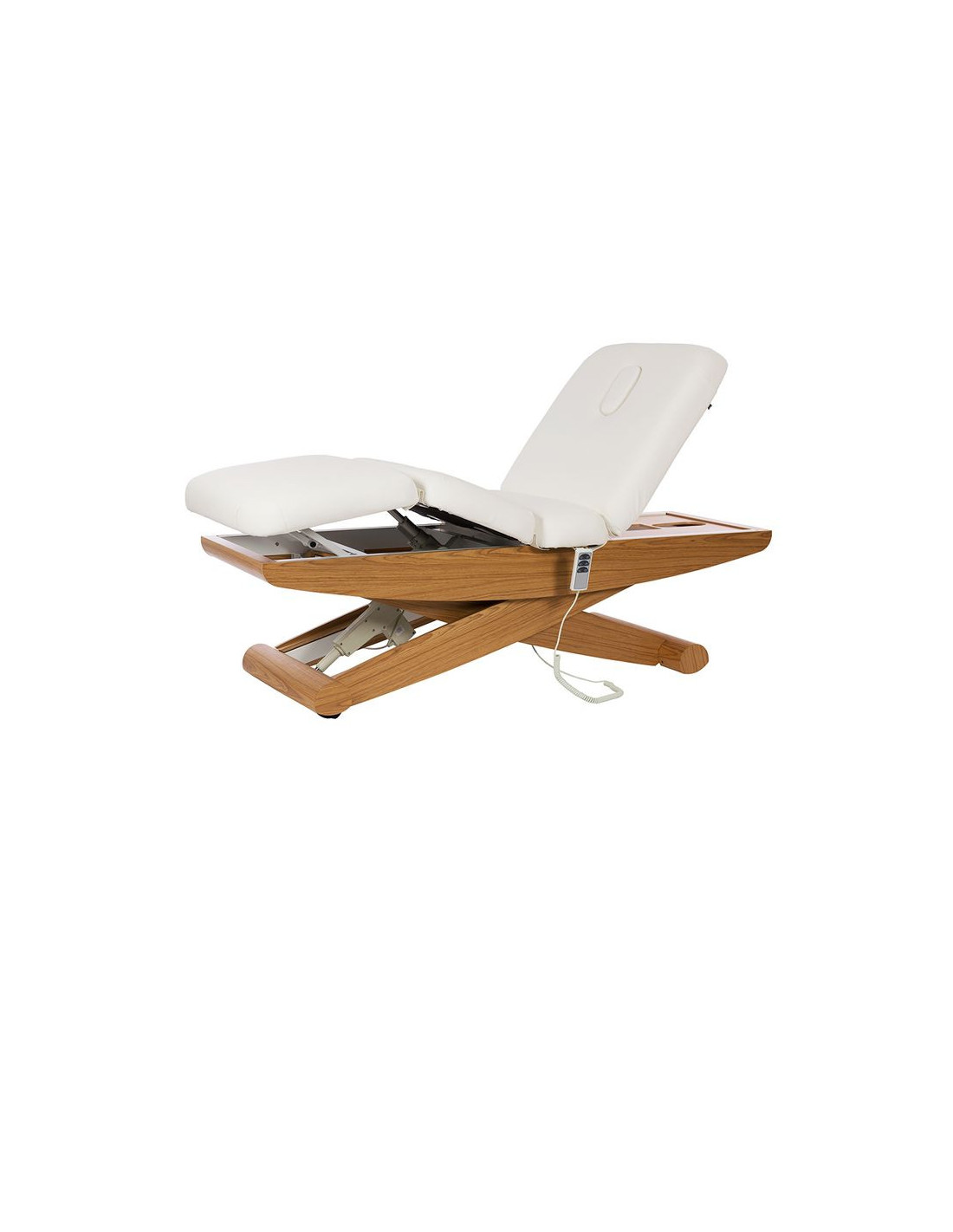 Equipada con 3 motores para controlar inclinación del respaldo, la altura y la parte central. Estructura metálica con acabado de madera. Acolchado confortable y tapizado de PU fácil de mantener. Respaldo con orificio facial. Carga máxima 180 kg.
