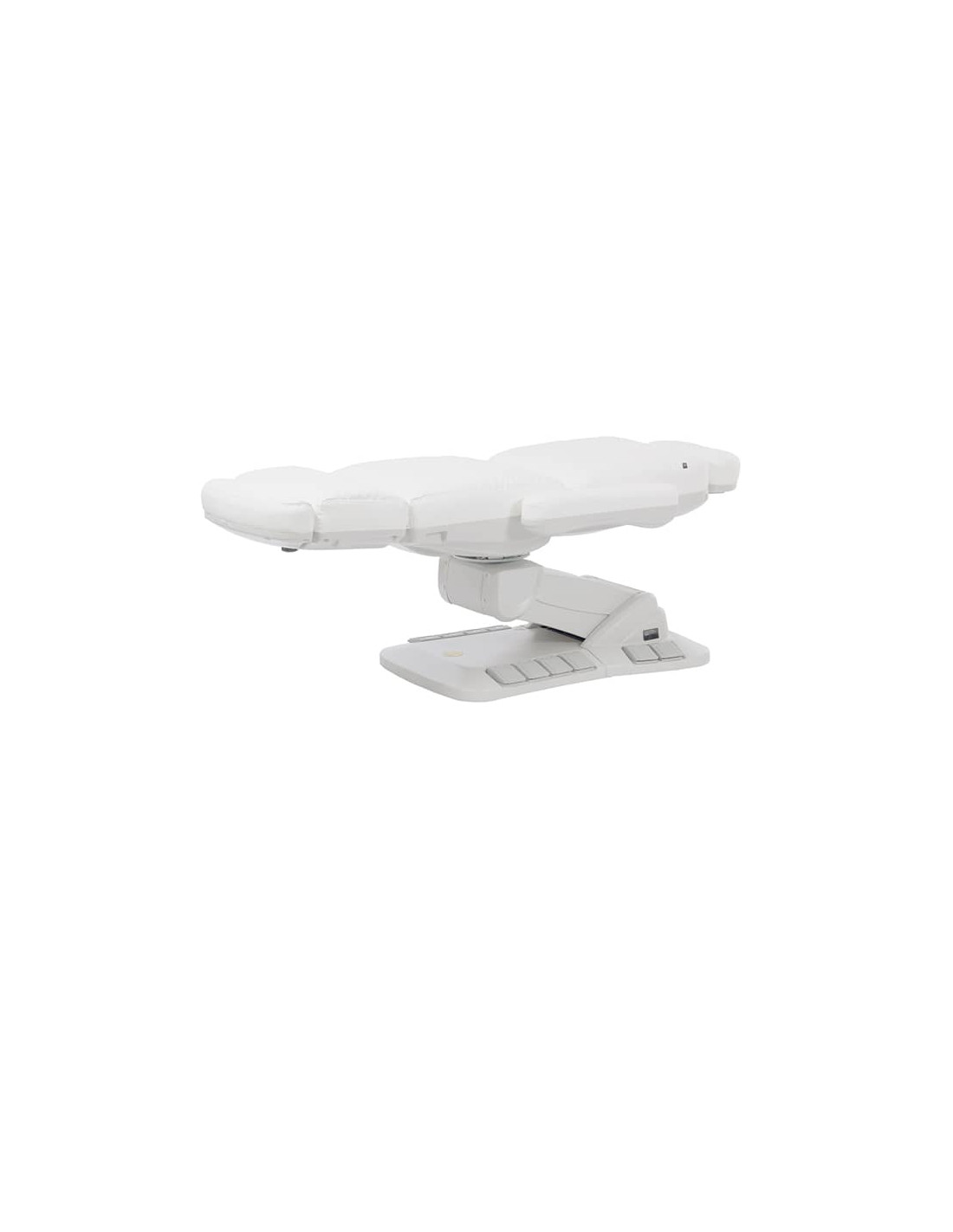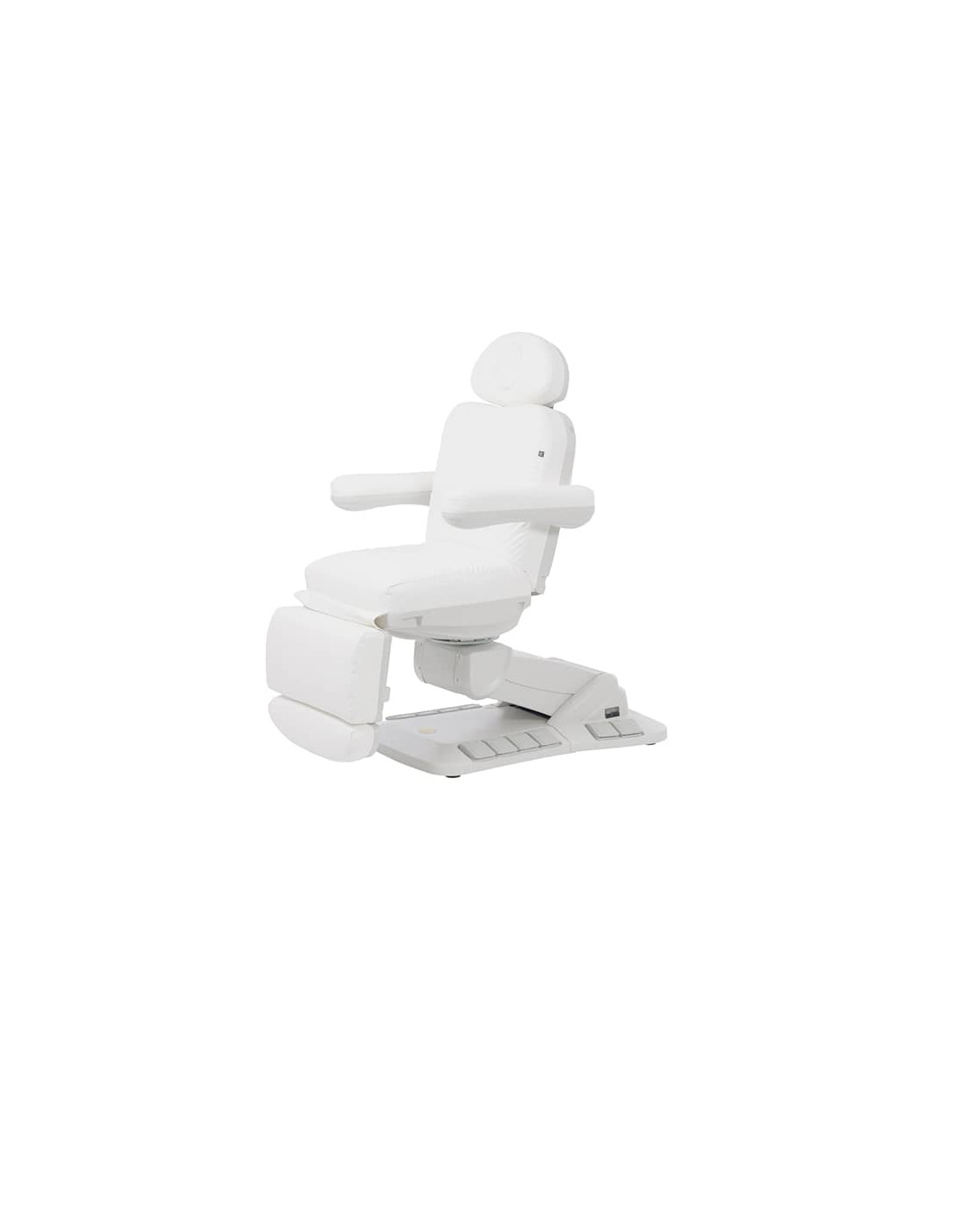 Equipada con 4 motores que regulan altura, inclinación del respaldo, asiento y reposapiés. Rotación del sillón de 90 grados. Botones de mando y pedales integrados en la estructura. Incorpora sistema de bloqueo haciéndola más segura y función RST de retorno a la posición de inicio. Tapizado de PU y acolchado muy blando de gran confort.
