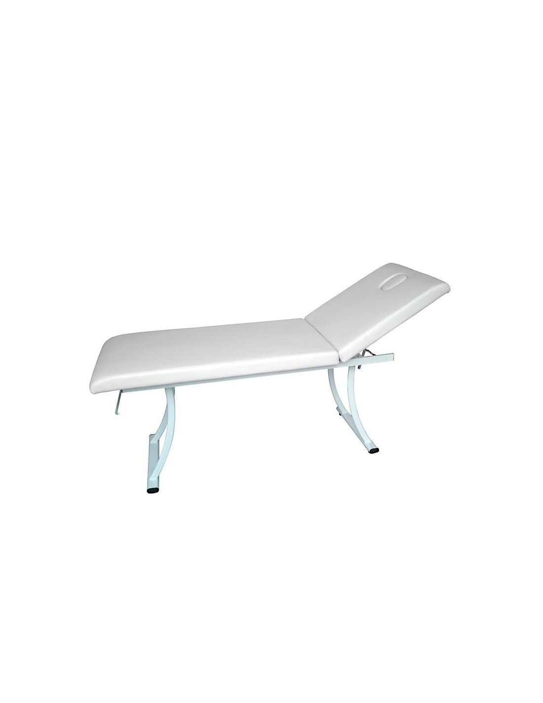 Estructura robusta de 2 cuerpos. Respaldo reclinable manualmente, dispone de orificio facial. Incorpora portarrollos. Tapizado de PVC muy resistente.