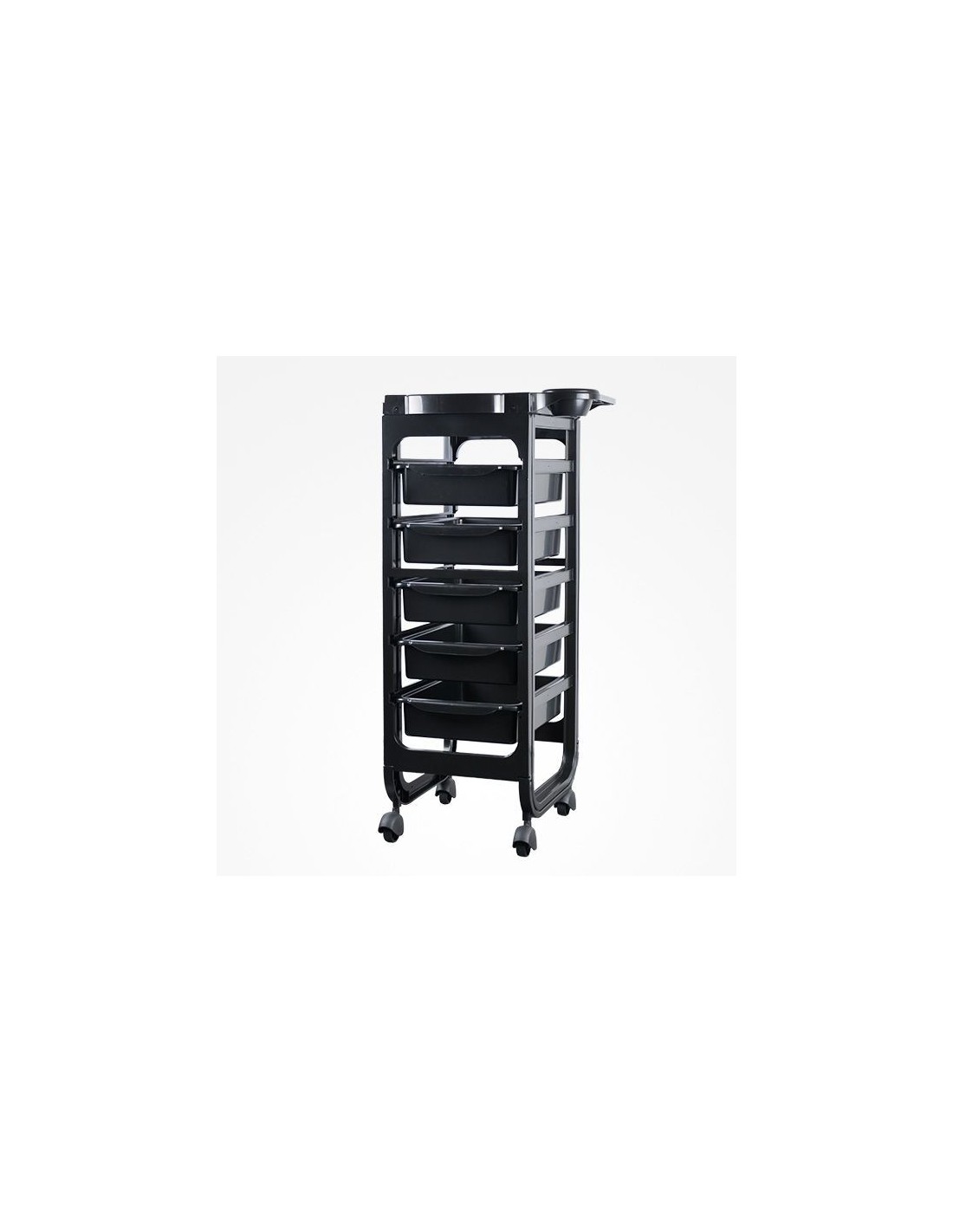 Ruedas silenciosas. 5 cajones extraíbles. Bandeja superior con soporte para el secador.