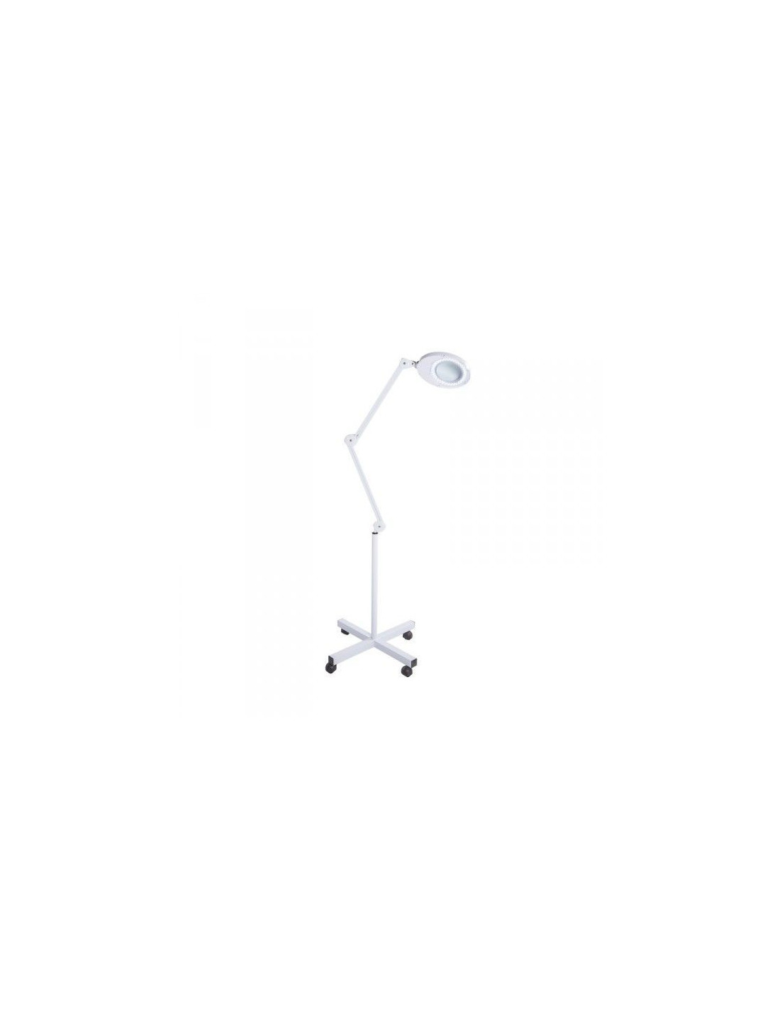 Base con ruedas. Brazo extensible de dos tramos. Luz de led y lupa con 5 dioptrías.