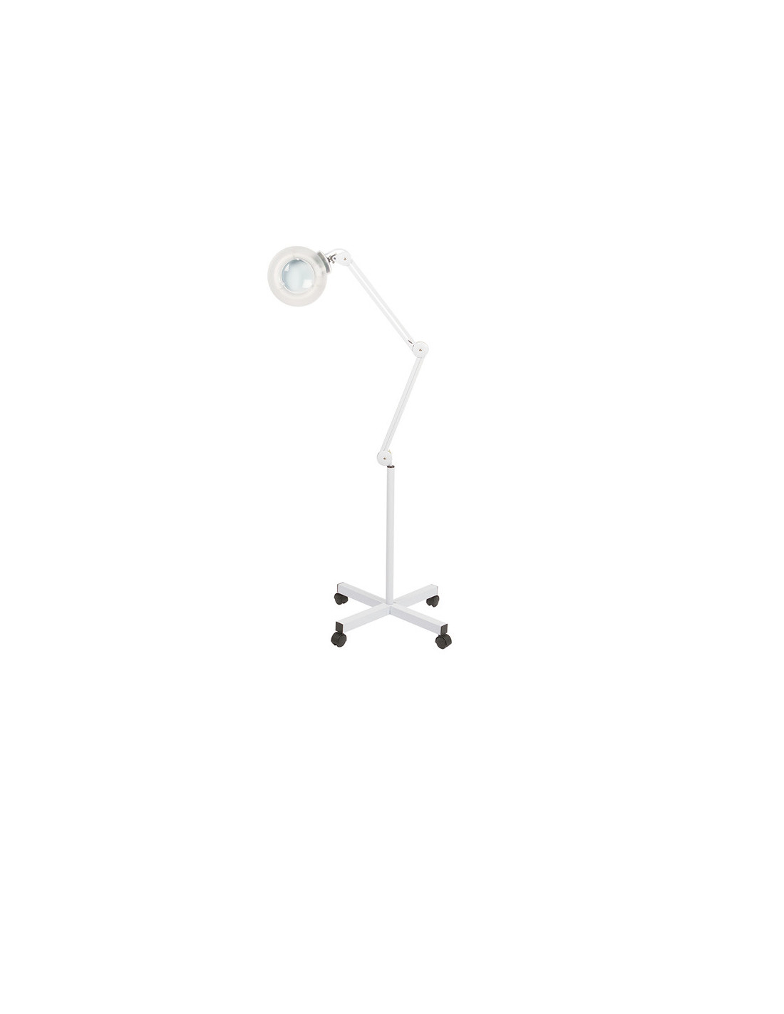 Lupa de 3 aumentos y luz fluorescente. Brazo articulado y base estable con ruedas.