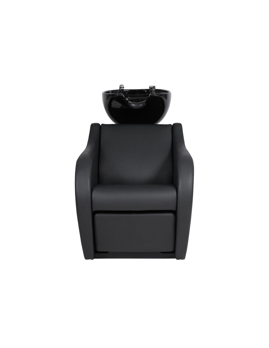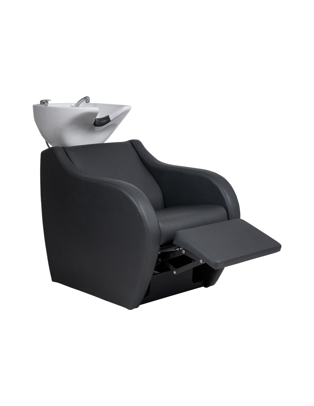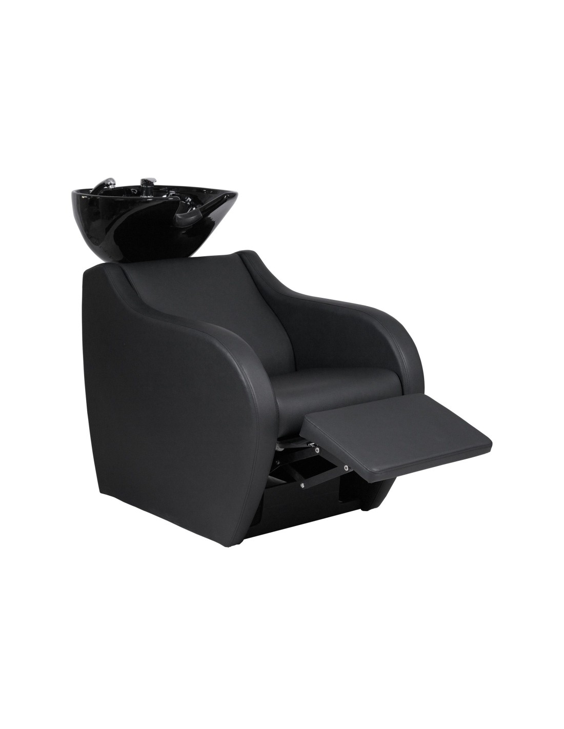Sillón con lava cabezas ideal para la comodidad del cliente en tratamientos de cierta duración. Mueble con estructura interior metálica. El asiento y el respaldo incorporan muelles para mayor comodidad. El respaldo lleva acolchado extra en la zona lumbar .Pica cerámica profunda en blanco o negro que se ajusta con un basculante. Grifería mono cromada de calidad con tubería de acero inoxidable. Ducha cromada con tubería de poliamida. Desagüe de acero inoxidable. Respaldo desmontable sin herramientas para una fácil instalación. Tapizado negro de alta calidad.
