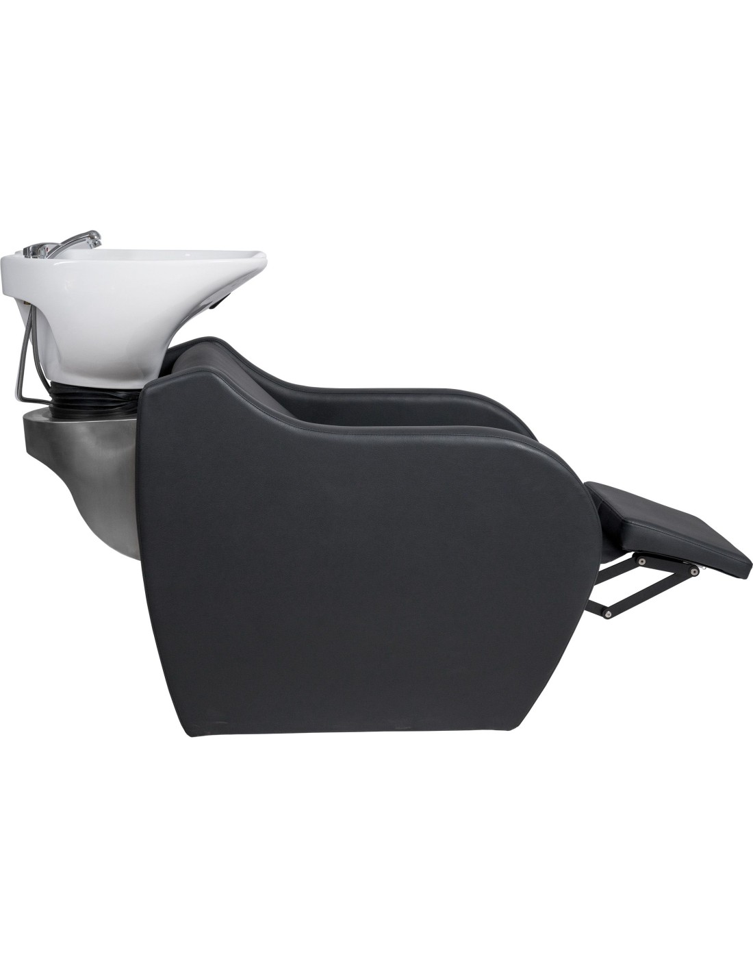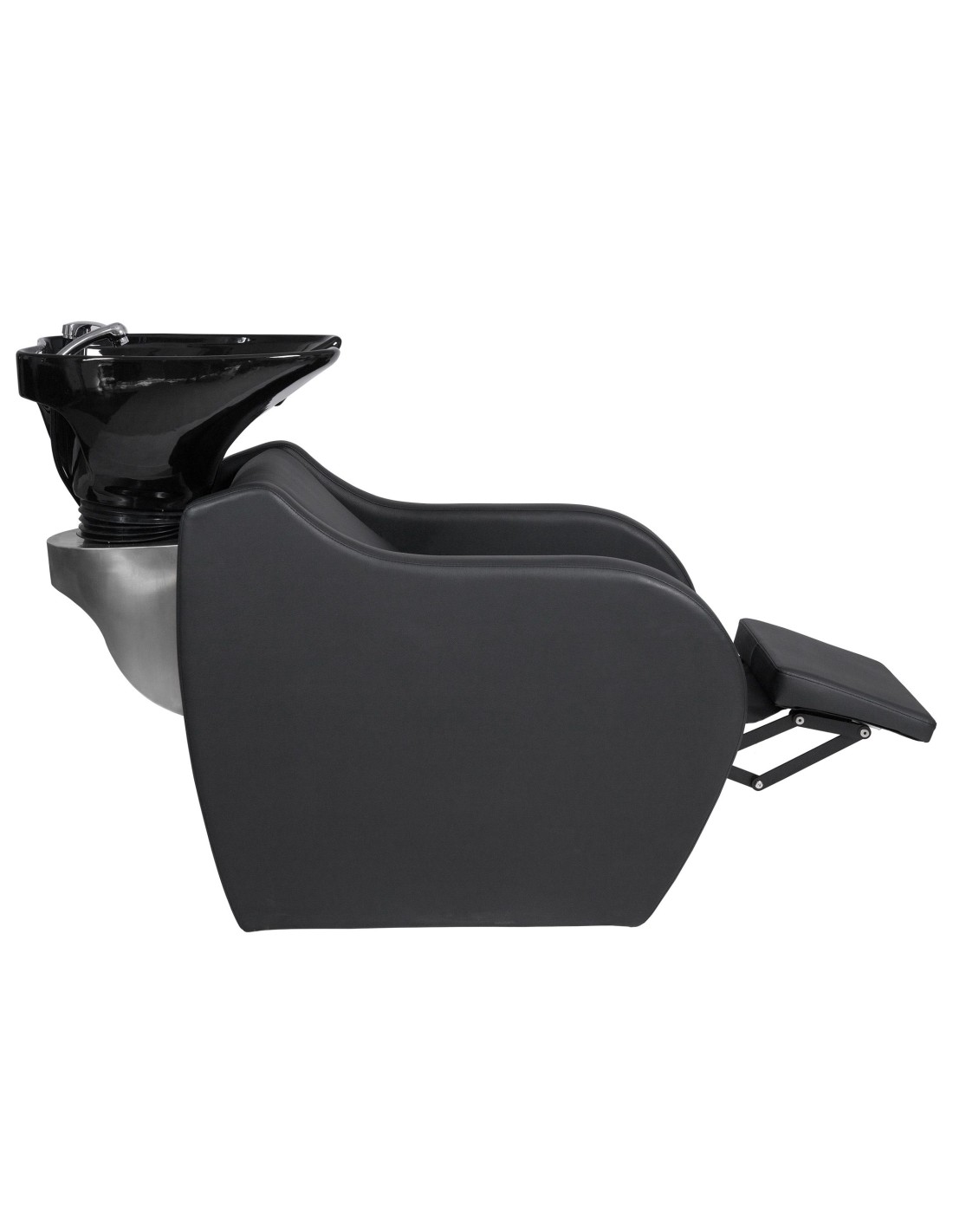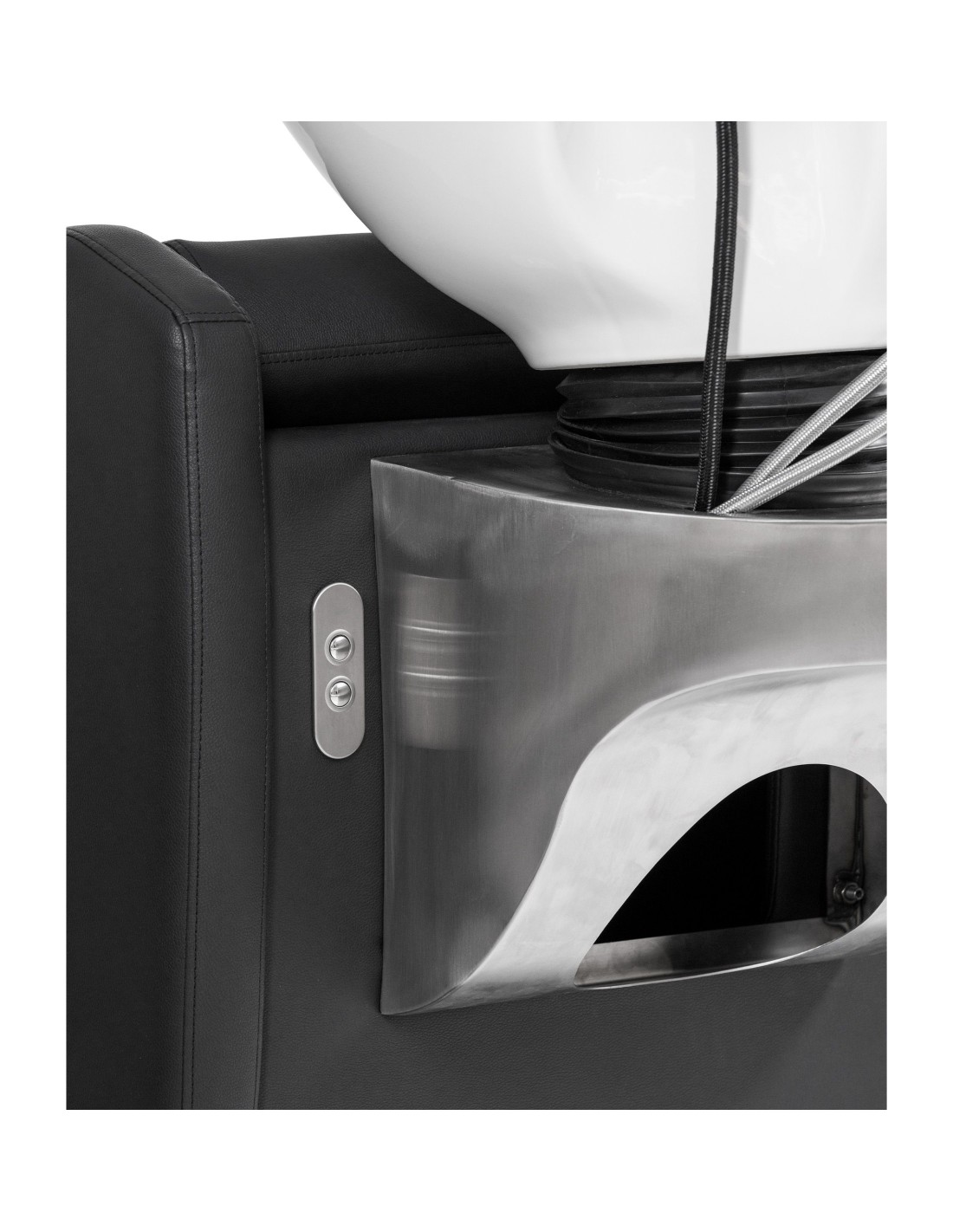 Sillón con lava cabezas ideal para la comodidad del cliente en tratamientos de cierta duración. Mueble con estructura interior metálica. El asiento y el respaldo incorporan muelles para mayor comodidad. El respaldo lleva acolchado extra en la zona lumbar .Pica cerámica profunda en blanco o negro que se ajusta con un basculante. Grifería mono cromada de calidad con tubería de acero inoxidable. Ducha cromada con tubería de poliamida. Desagüe de acero inoxidable. Respaldo desmontable sin herramientas para una fácil instalación. Tapizado negro de alta calidad.