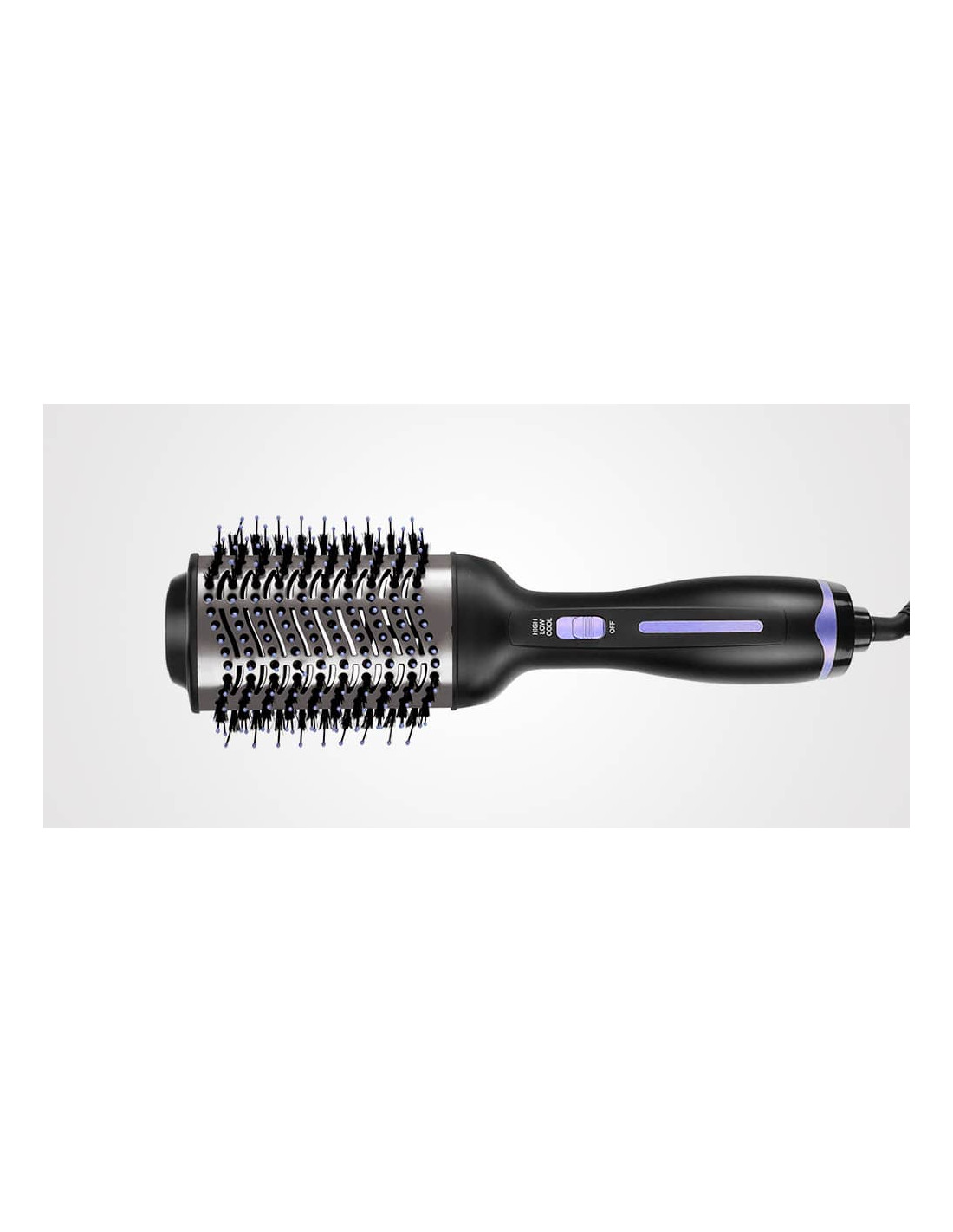 Utensilio de gran versatilidad, con 3 niveles de calor y un flujo constante de aire para un secado más rápido y una distribución homogénea del calor. Placa de turmalina que ayuda a dejar el pelo más brillante y suave. Cerdas de nylon de 2 longitudes que facilitan el desenredado.