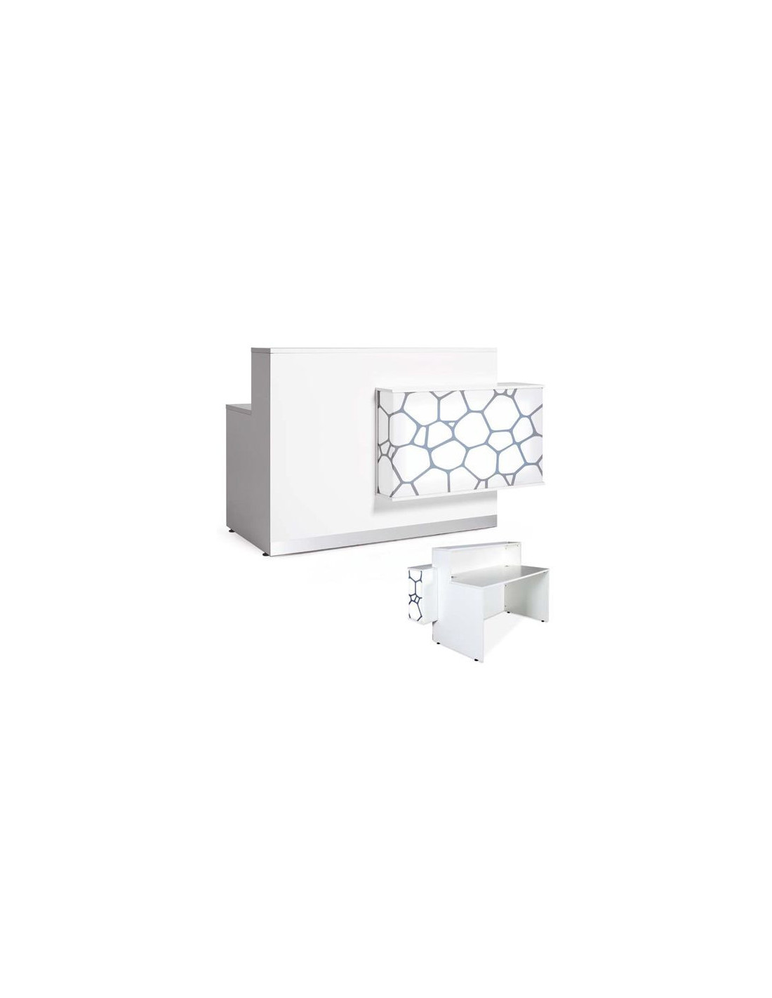 Frontal retroiluminado que aporta calidez a la estancia. Mostrador de grandes dimensiones 160 cm de largo y ancho para poder ser utilizado como mesa escritorio.