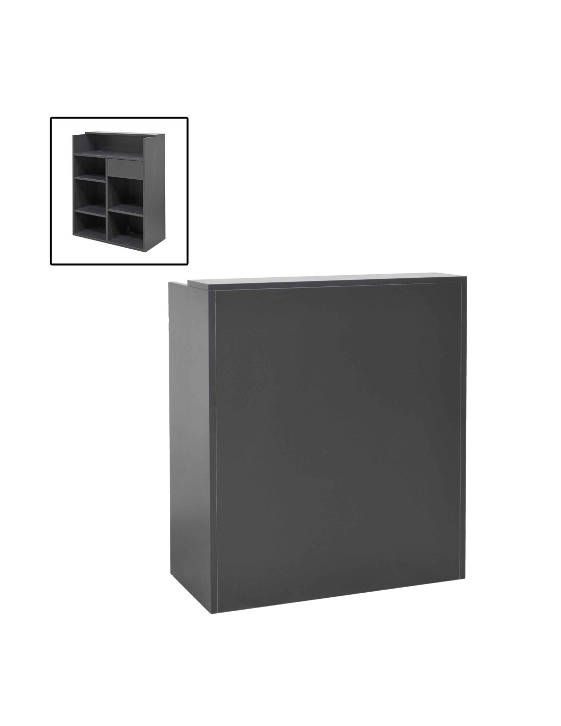 Fabricado en melamina. Gran capacidad de almacenamiento gracias a sus estantes y cajón. Ideal para salones con poco espacio.