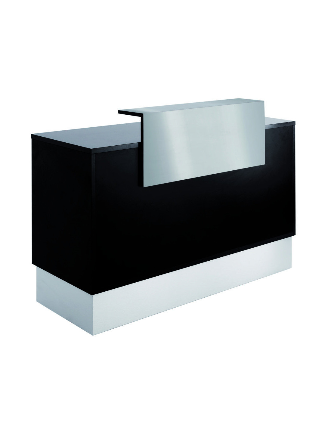 Estructura de madera color negro. Frontal de acero inoxidable. Incluye balda para ordenador y cajón. Gran capacidad de almacenamiento en sus diferentes compartimentos.
