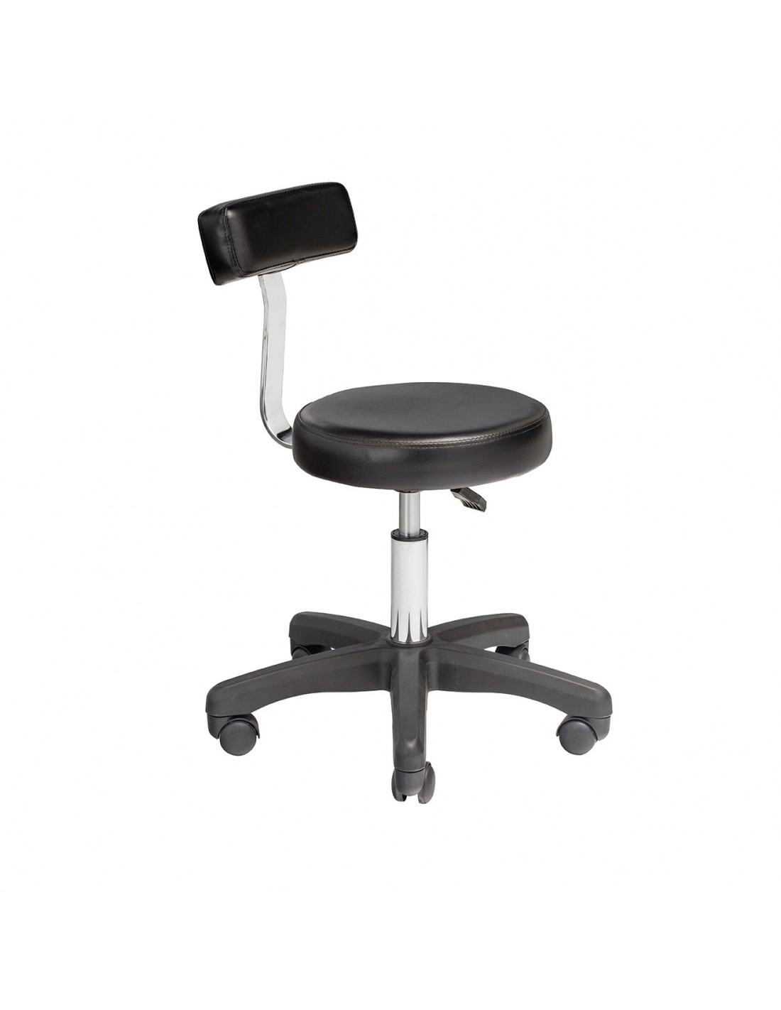 Tapizado en color negro. Pistón de gas cromado y base de Nylon con 5 ruedas.