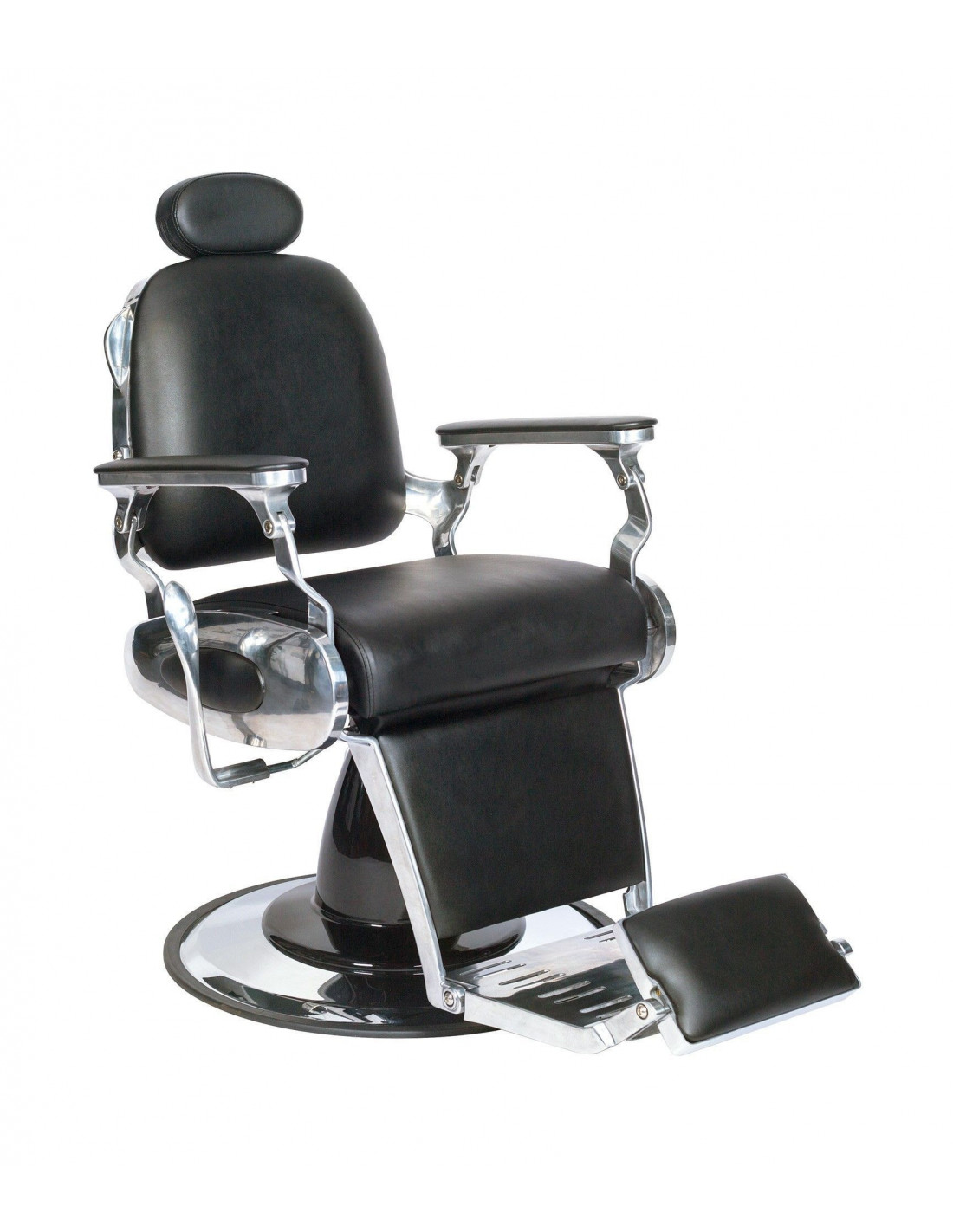 Respaldo reclinable manualmente y reposacabezas extensible. Apoyapiés de aluminio reversible e inclinable. Bomba hidráulica con freno y embellecedor en color negro. Estructura de aluminio inyectado y base redonda cromada. Tapizado de PVC y espuma de alta densidad. Carga máxima 150 kg.