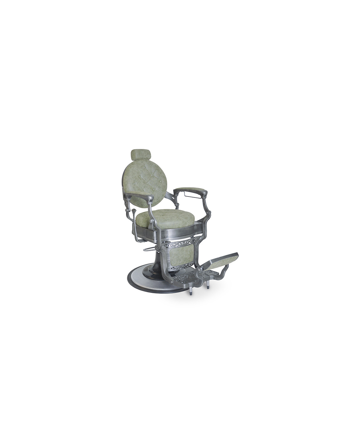 Original sillón de barbero. Tapicería en verde envejecido estructura cromada. Estilo vintage como las antiguas barberías. Combínalo con el tocador Varys.