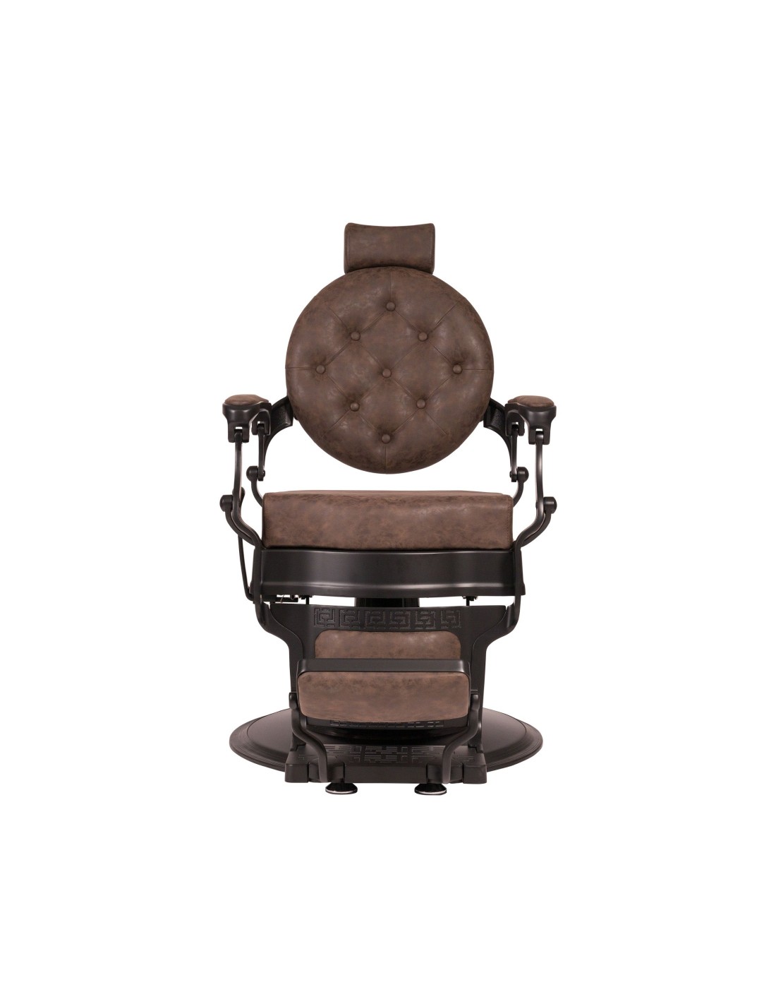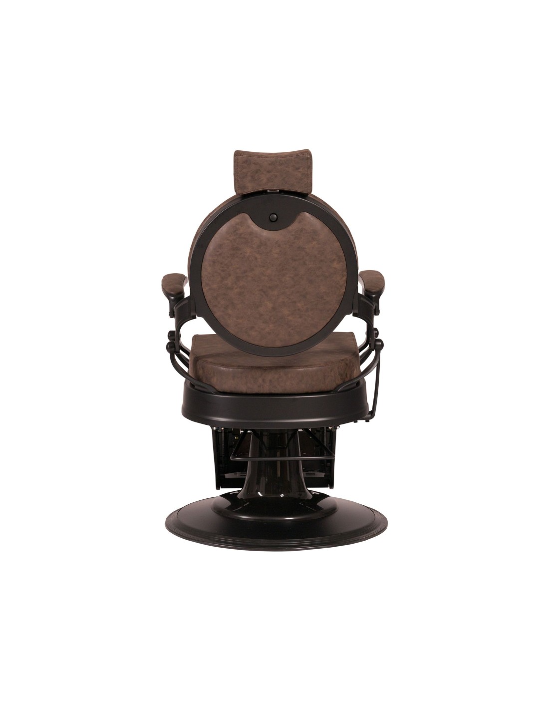 Sillón de barbería sofisticado, con un chasis completo metálico de inyección de aluminio. Base redonda y estructura completa con acabado negro mate. Reposapiés reversible. Bomba hidráulica de alta calidad. Asiento con espuma de alta densidad para el máximo confort y durabilidad. Tapizado con acabado marrón.