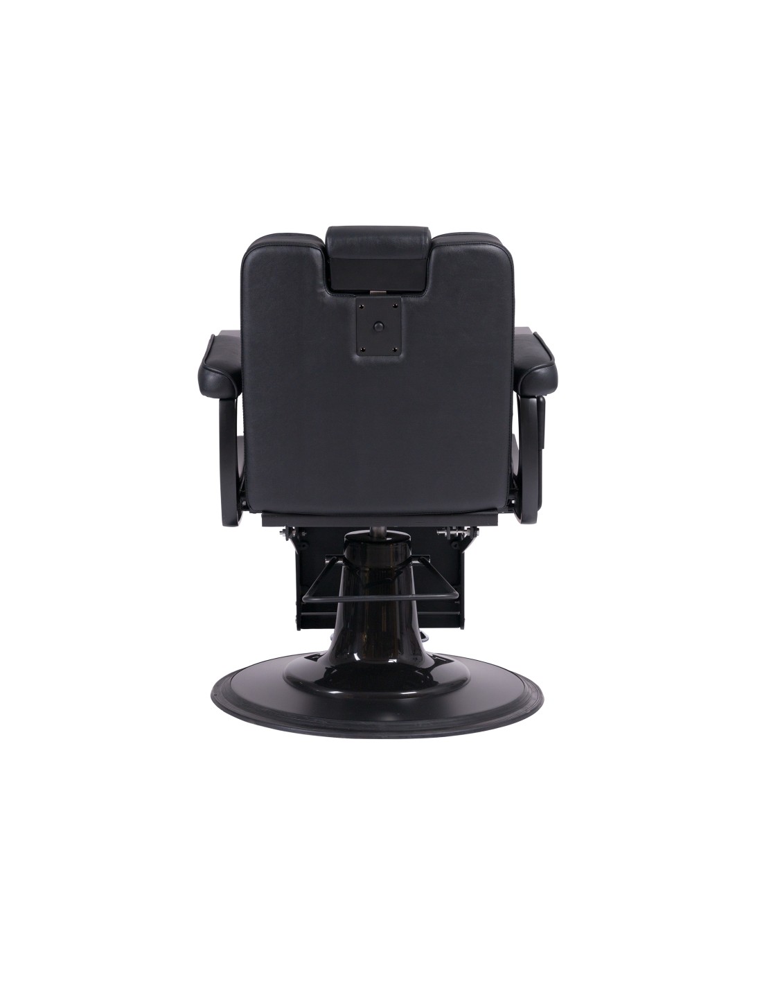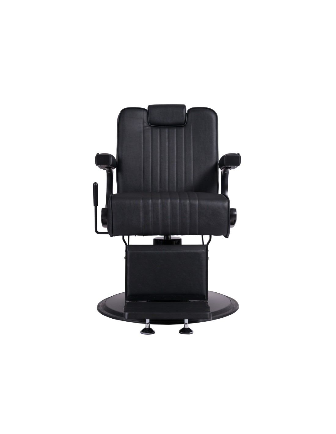 Sillón de barbería robusto, con un chasis a partir de piezas de inyección de aluminio y con una estructura interior metálica. Base redonda con acabado negro mate, con bomba hidráulica de alta calidad. asiento con espuma de alta densidad con muelles para el máximo confort y durabilidad. Acabado del tapizado con costuras verticales negras.