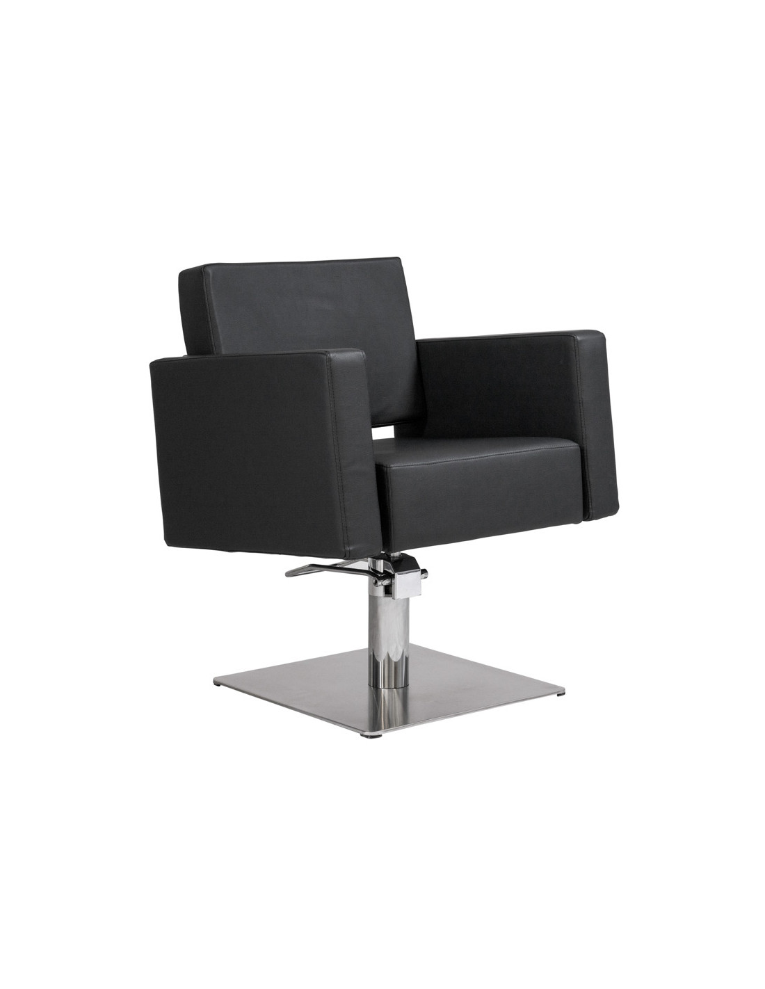 Silla de corte cómoda y ergonómica. Asiento de espuma de alta densidad y muelles metálicos, con estructura interior metálica muy resistente. Base cuadrada muy fina de acero inoxidable para mayor comodidad para el profesional. Muy sólida y estable. Bomba hidráulica bloqueable con freno de alta calidad. Tapizado negro de fácil limpieza.