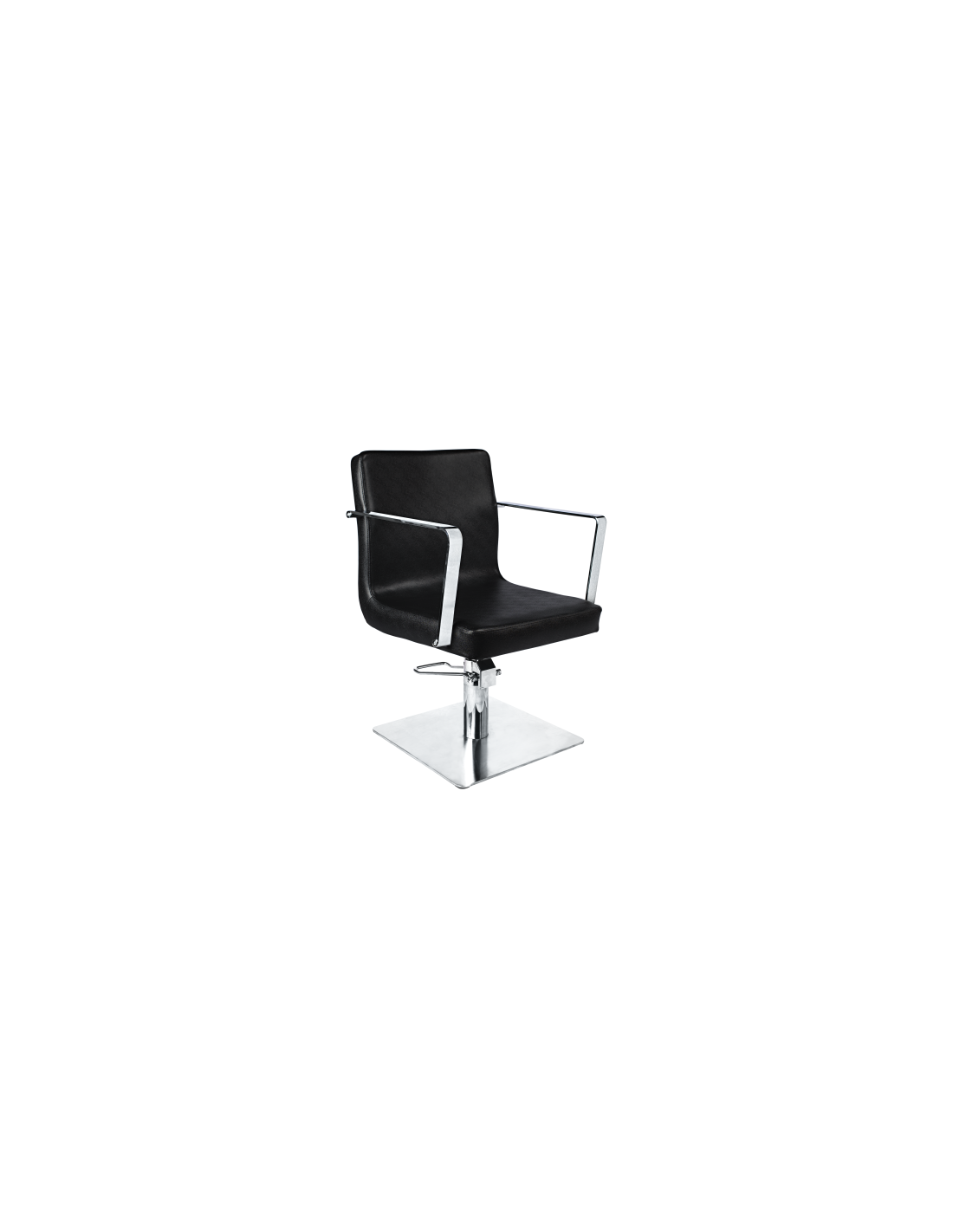 Butaca de señora, bomba hidráulica con freno y brazos cromados. Disponible con base cuadrada de acero inoxidable. Tapizado según muestrario.