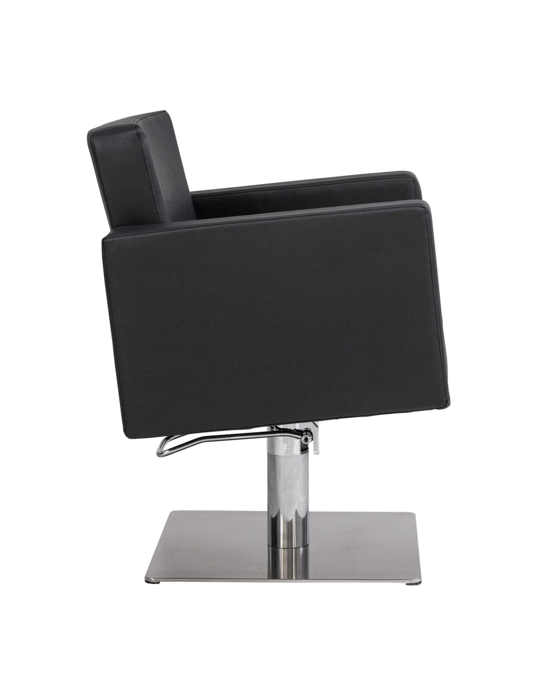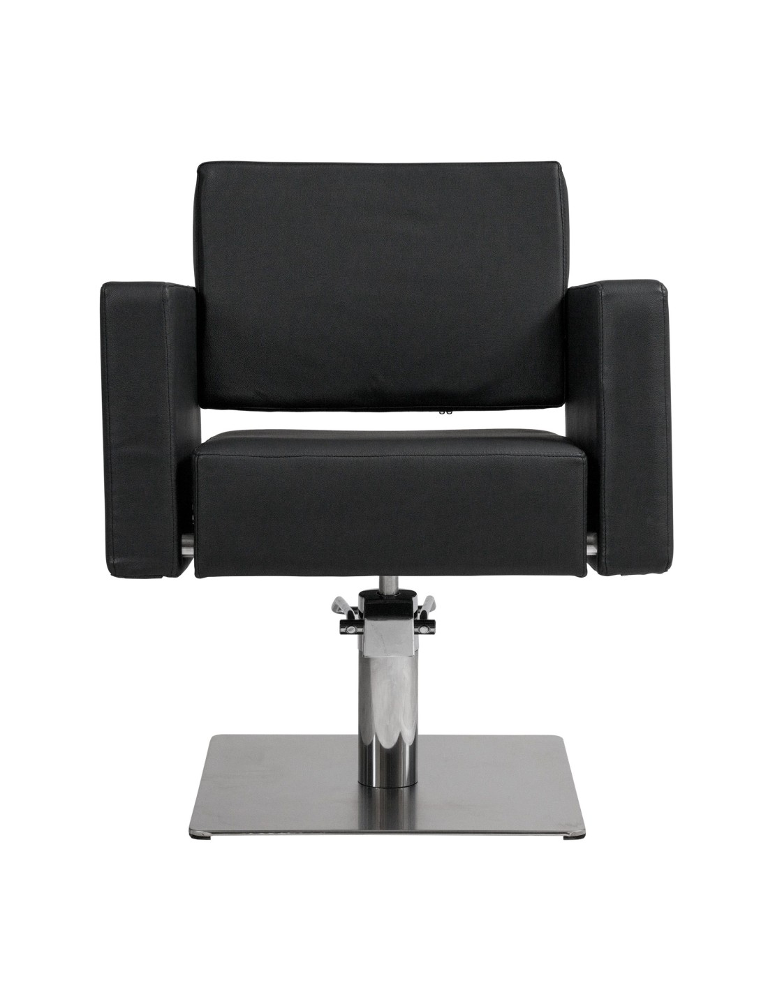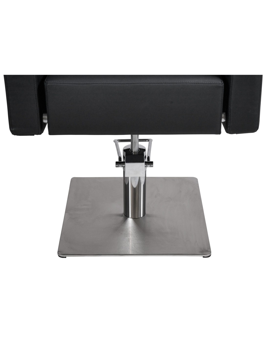 Silla de corte cómoda y ergonómica. Asiento de espuma de alta densidad y muelles metálicos, con estructura interior metálica muy resistente. Base cuadrada muy fina de acero inoxidable para mayor comodidad para el profesional. Muy sólida y estable. Bomba hidráulica bloqueable con freno de alta calidad. Tapizado negro de fácil limpieza