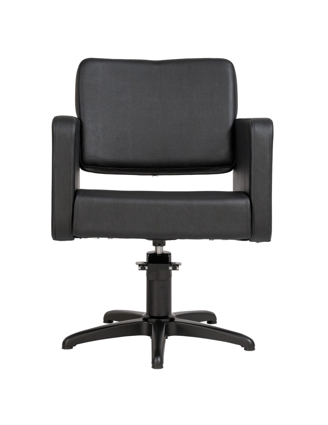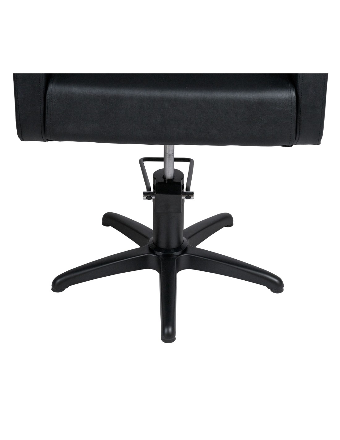 Silla de corte cómoda, con espuma de inyección de poliuretano y estructura interior metálica con muellas para ofrecer un gran confort. Base estrellada inyección de aluminio negra mate. Bomba hidráulica bloqueable con freno de alta calidad. Tapizado negro.