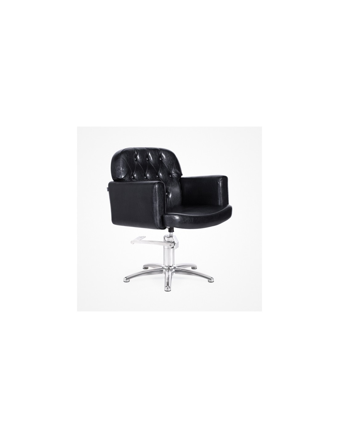 Tapicería en color negro Vintage. Pie de aluminio en forma de estrella, altura regulable gracias a una bomba hidráulica con freno.