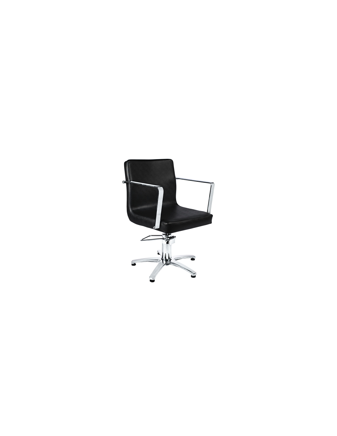 Base cromada en forma de estrella, altura regulable gracias a la bomba hidráulica con freno y tapicería en color negro, de fácil mantenimiento.