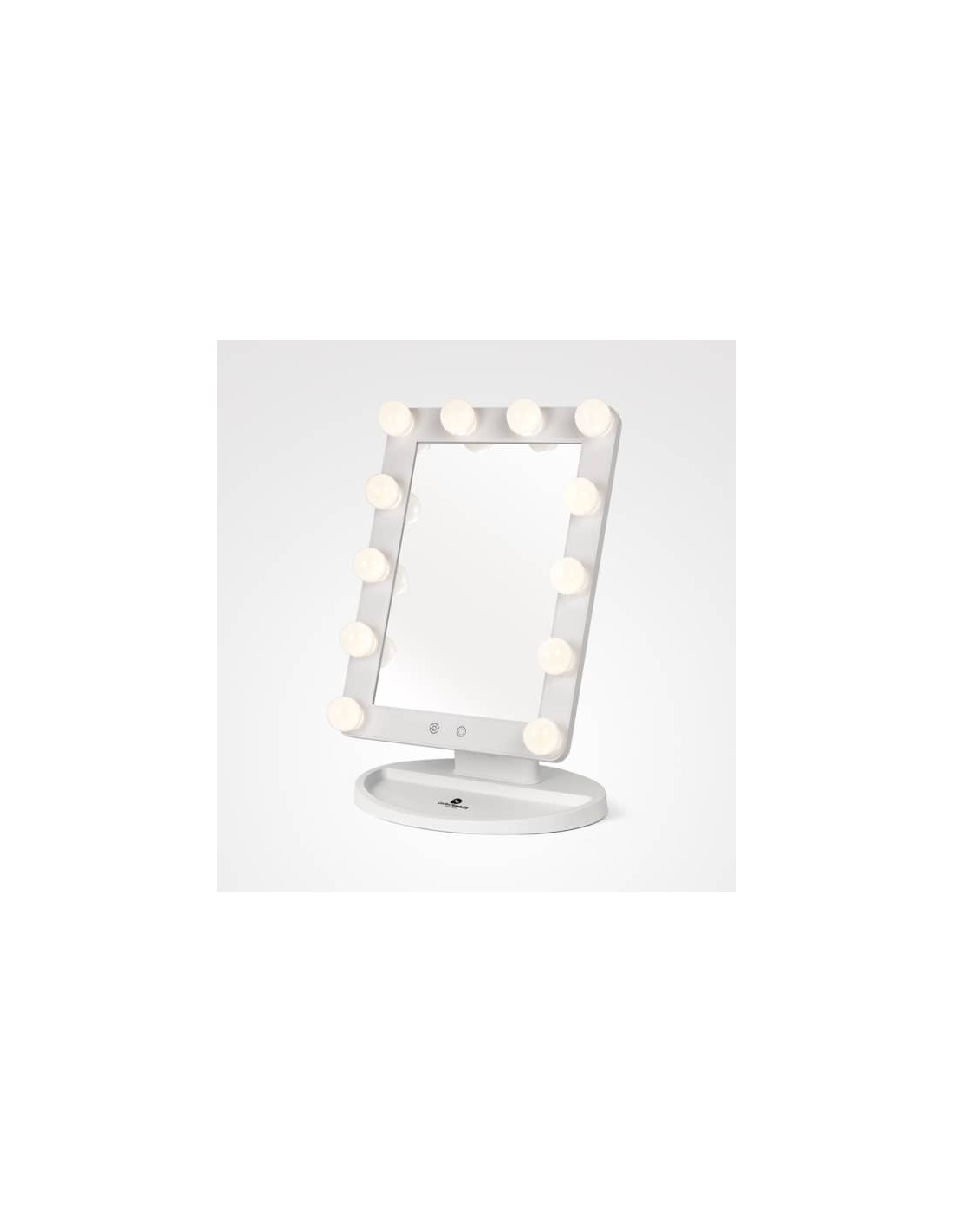 Espejo eléctrico, inclinación ajustable hasta 25º. Marco con 12 bombillas leds que proporcionan una óptima iluminación. Luz cálida, natural o fría. Pantalla táctil.