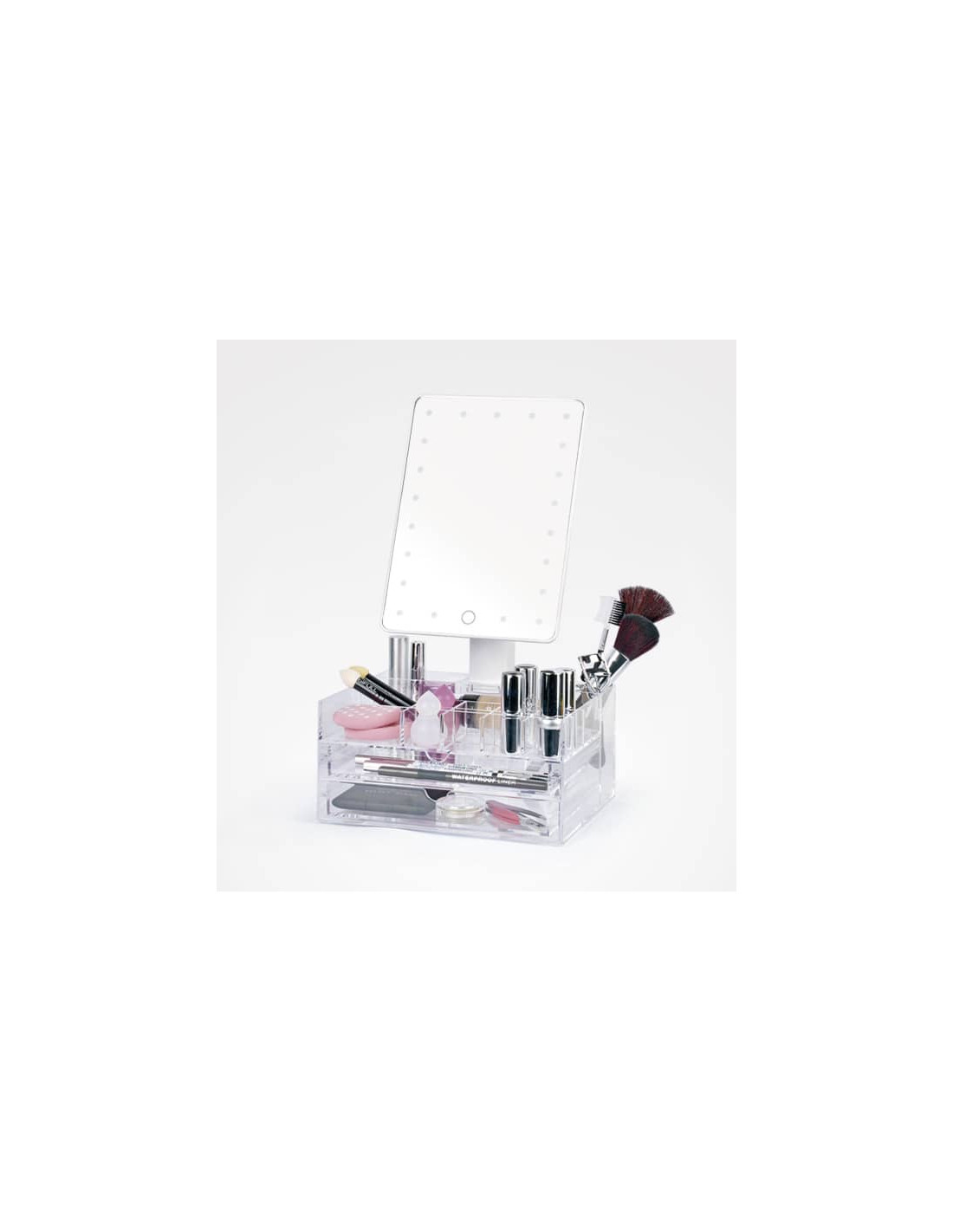 Ángulo de inclinación del espejo hasta 180º. Base con compartimento para utensilios. Marco con 21 leds para una excelente iluminación. Pantalla táctil.